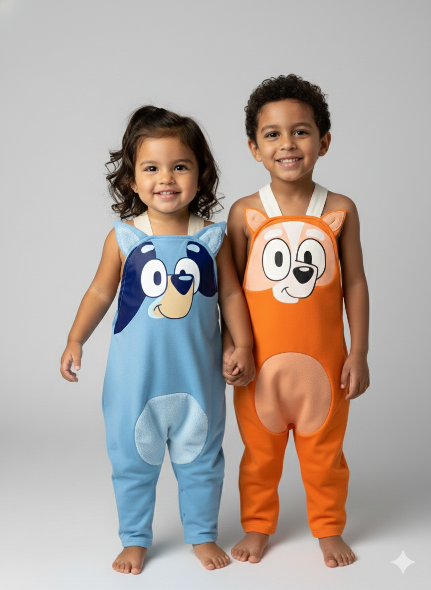 Tipo:OverolMotivo:Bluey & BingoColor:Azul - NaranjaMaterial:Burda liviana licrada*Imágenes de referencia*